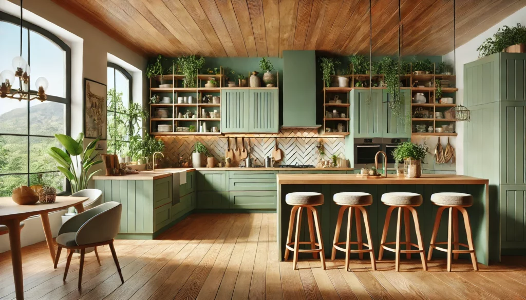 L’intégration de verts terreux dans votre cuisine peut être réalisée à travers des éléments tels que les armoires, les îlots de cuisine ou même les murs. Ces teintes se marient parfaitement avec des matériaux naturels comme le bois brut ou le marbre, créant une ambiance harmonieuse et organique. Pour accentuer l’effet, on peut ajouter des plantes d’intérieur, qui renforceront cette sensation de bien-être et d’équilibre.